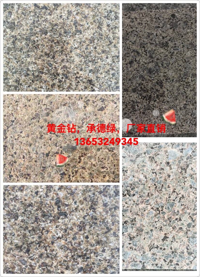 我公司以礦山開(kāi)采石材加工為一體主要經(jīng)營(yíng):黃金鉆、寶金石、皇室珍珠、承德綠、藍(lán)豹、皇室啡、燕山綠、荔枝面、火燒板、光板、機(jī)切面、蘑菇石、盲道石 異型加工等各種規(guī)格板材。承接園林、廣場(chǎng)、外墻干掛等各種工程應(yīng)用板材。我公司奉行:以質(zhì)量求生存、以信譽(yù)求發(fā)展的原則,誠(chéng)石守信、主客雙贏、同等的質(zhì)量比價(jià)格、同等的價(jià)格比質(zhì)量的經(jīng)營(yíng)理念。誠(chéng)迎各界商客朋友來(lái)我公司參觀指導(dǎo)洽談業(yè)務(wù)!訂購(gòu)熱線(xiàn):? 13832461168 13653249345(微信同號(hào))