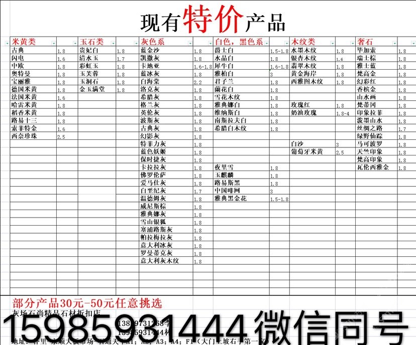 現(xiàn)有100000平大板特價(百來個品種),低至30元起