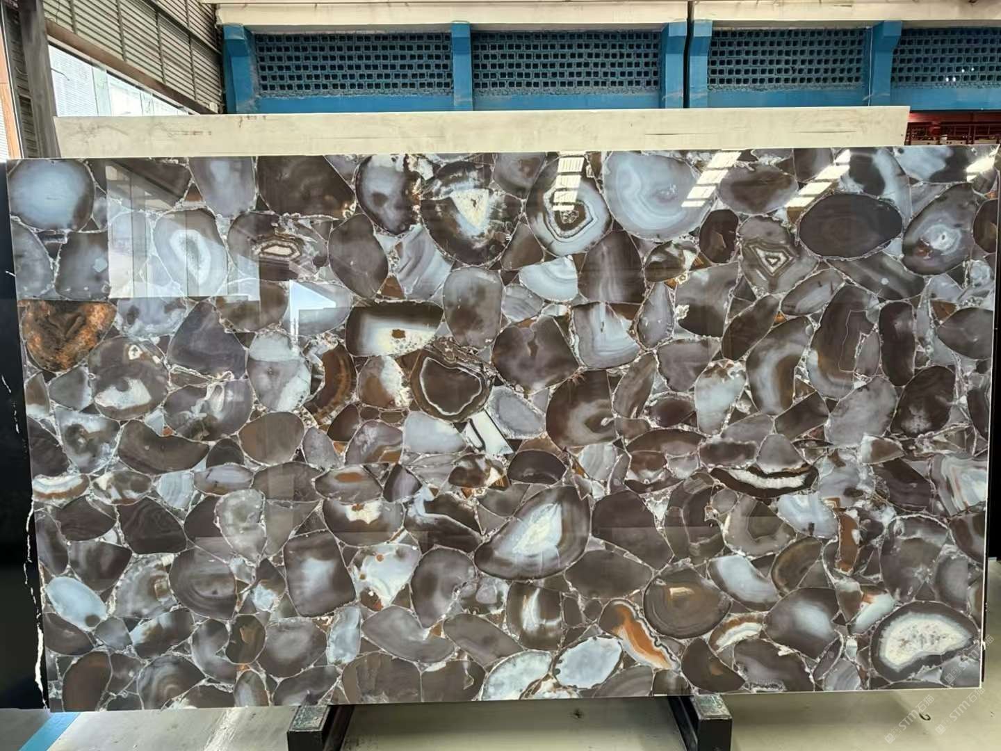 公司配有大板批發(fā)專場,同時擁有大型精加工廠房,其中各類加工器械完備,加工微晶石的工藝配套6000平方場地,并擁有建材行業(yè)各路精英成員。