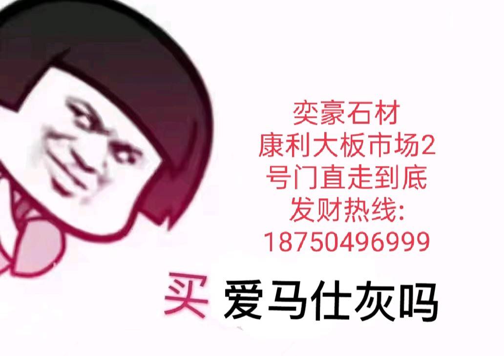 發(fā)布信息: 奕豪石材主營(yíng):藍(lán)金沙、灰金沙、白金沙、古堡灰、美尼斯灰、芭保利灰,量大、質(zhì)優(yōu)、價(jià)廉!歡迎前來選購(gòu)! 地址:康利市場(chǎng)2號(hào)門走到底K2區(qū)藍(lán)金沙專場(chǎng) 康利市場(chǎng)3號(hào)門進(jìn)H5區(qū)灰石系列專場(chǎng) 電話:15905935695戴 13665969508張