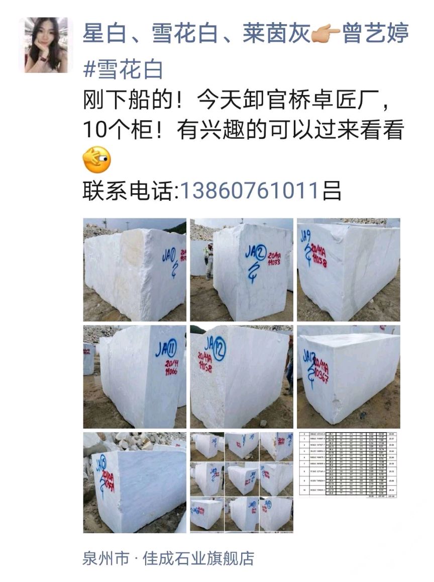 發(fā)布信息: 新到10個(gè)柜,雪花白 。 有興趣的聯(lián)系:13860761011呂