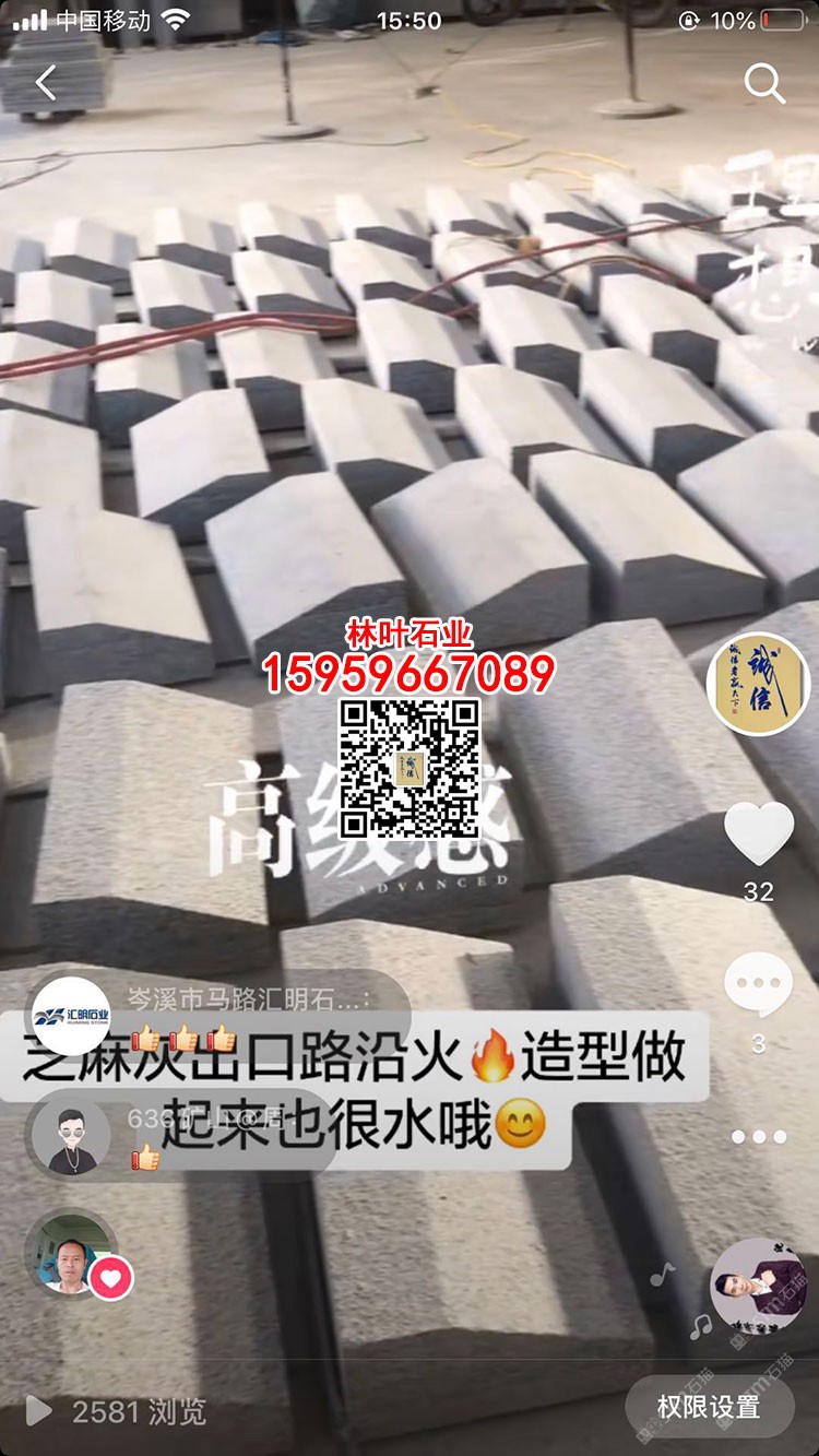 發(fā)布信息: 林葉石業(yè)長泰工廠(林總15959667089微信同號(hào))專業(yè)老礦芝麻黑與芝麻灰供應(yīng)商,專注于出口及高品質(zhì)工程國內(nèi)外園林景觀石材;主營:老礦芝麻黑墓碑石、正礦吳田山G654窗臺(tái)板、G654芝麻黑牛鼻子、芝麻黑石材游泳池蓋板、老礦芝麻黑出口高品質(zhì)工程板、老礦654小方塊馬蹄石、芝麻灰G655路沿石、深灰麻石材、中灰麻石材、深灰色花崗巖、黑色麻石等光面、燒面、荔枝面、墓碑石材、地鋪石材、園林景觀工程、路沿石材等;林葉石業(yè)寧德工廠(葉總18050650127微信同號(hào))專業(yè)新礦芝麻黑寧德小藍(lán)寶,廠礦一體,體格優(yōu)惠,真誠希望您的光臨與合作!(聲明上傳產(chǎn)品圖片均是本廠加工生產(chǎn))