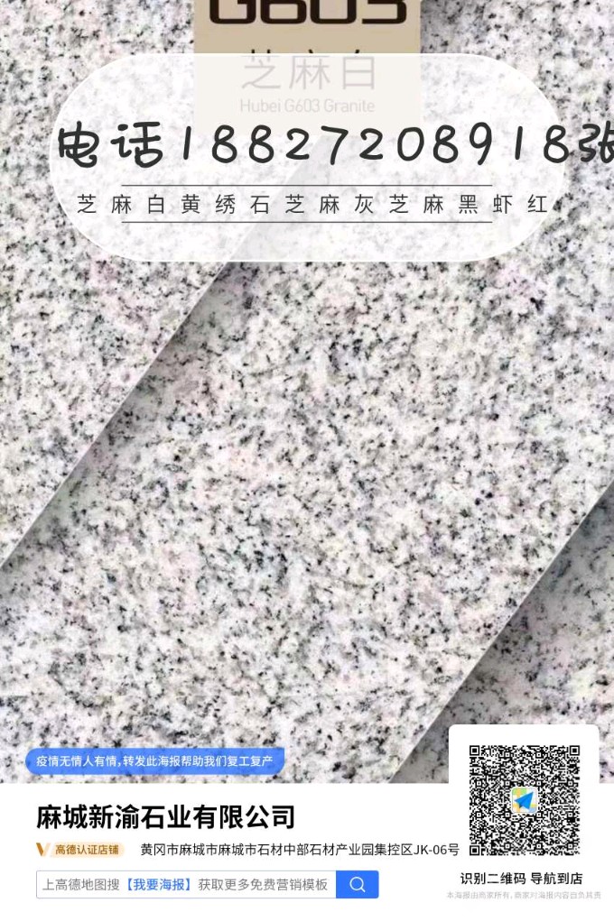 發(fā)布信息: 芝麻白…黃繡石…芝麻灰…芝麻黑 中國黑 蝦紅……廠礦直銷 價格優(yōu)惠 主營干掛,地鋪,路沿石,蘑菇石,火燒面,光面,荔枝面,機切面,自然面,異形加工等各種規(guī)格板材。承接園林,廣場外墻干掛等各種工程應用板材。規(guī)格齊全,薄利多銷 保質(zhì)保量,歡迎各地老板前來參觀考察 地址…湖北省麻城市…中部石材產(chǎn)業(yè)園。電話15586518887&17671069740張先生(微信同號)